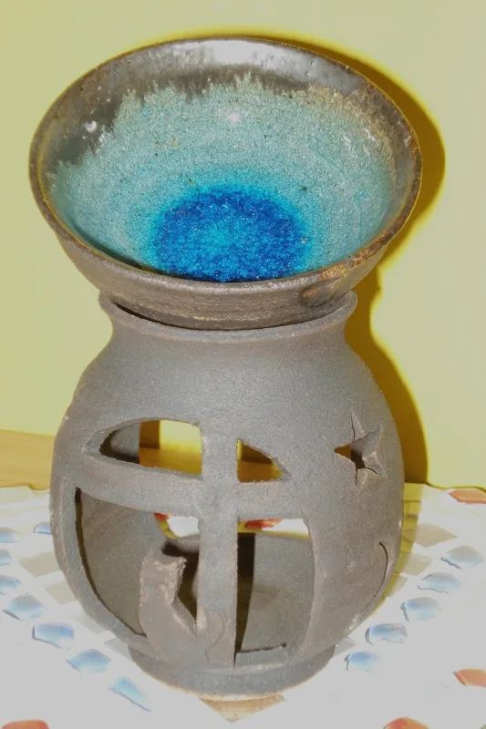 Art.-Nr.: 1062 CHF / Stk. 40.00 Anzahl (Stk.): Stk. Produktbeschreibung Aus Tonsteingut handgefertigtes Einzelstück.Die Schale ist gross und reicht für mehr als eine Kerzenlänge.Es ist 2 teilig Schale&KorbusDie Lackierung türkis und schwarz.